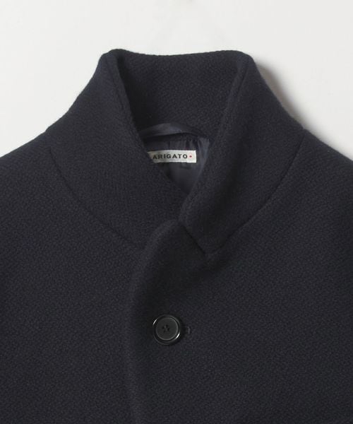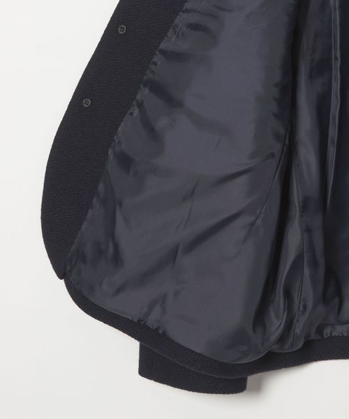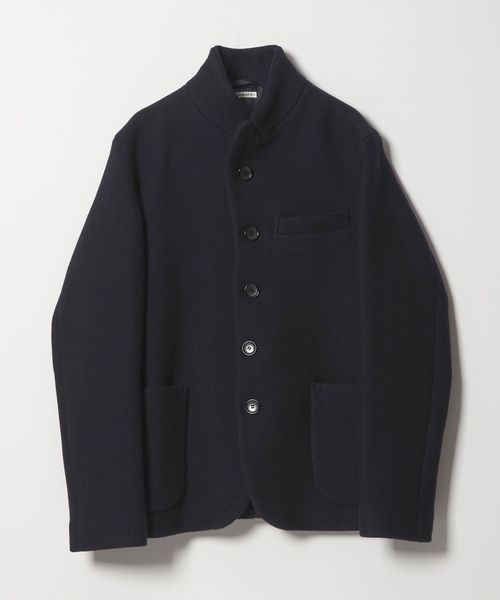 クラシカルな雰囲気を持つスタンドラペルのジャケットをモダンなサイズ感に調整し、身頃や肩回りにほどよいゆとりを持たせています。
