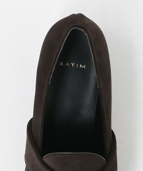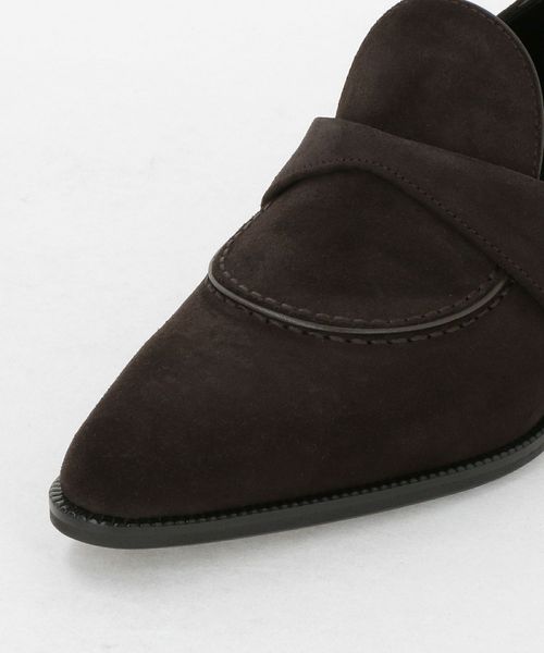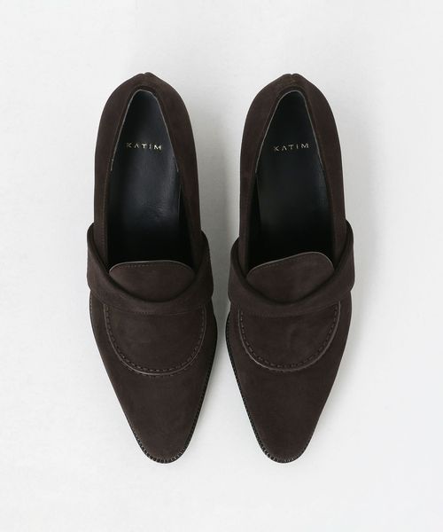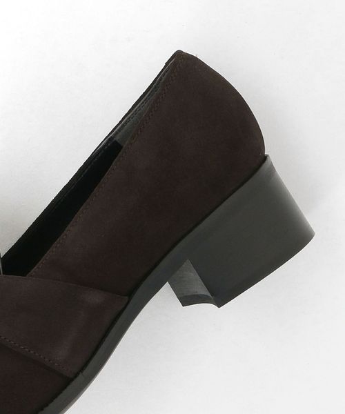 丸いモカ飾りをアッパーの真ん中にあしらって蝶ネクタイのようなベルトで優しく押さえた美しいデザインが魅力。