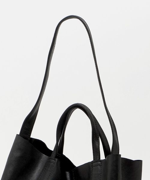 収納力のある大きさに、くたっとしたやわらかさと軽い使い心地で、デイリーユースに最適で、使い込んでいくうちにレザーの経年変化も楽しめるバッグです。