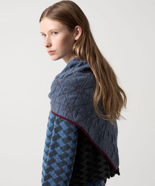 <YanYan>らしい個性的な柄が目をひくニットショール。