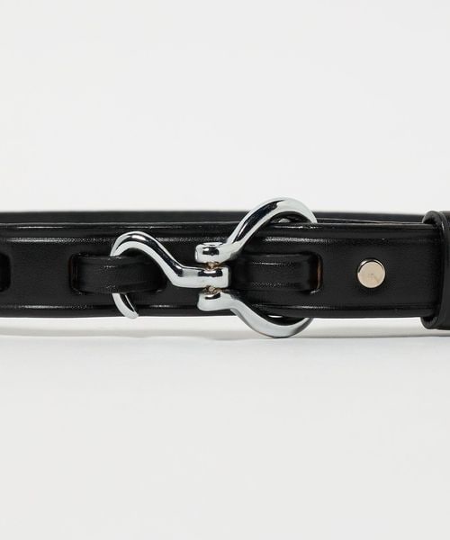 フック型のバックルが特徴的な<TORY LEATHER>のベルト。