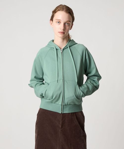クリアな表面感とハリのあるコットンを使用した、ジップアップパーカー。