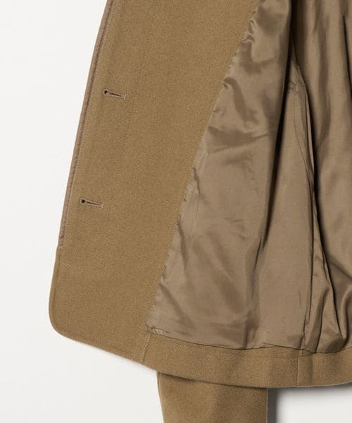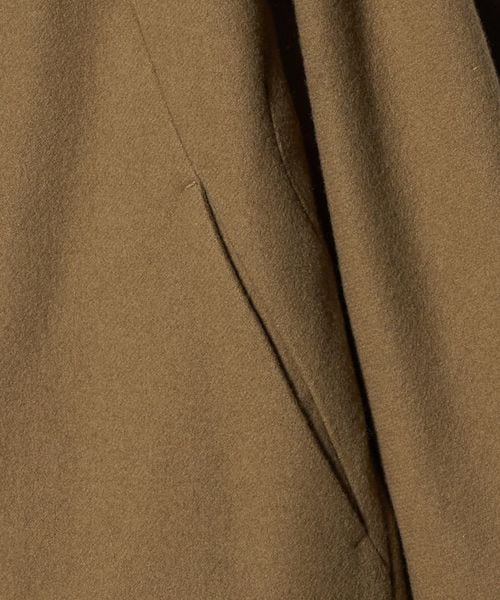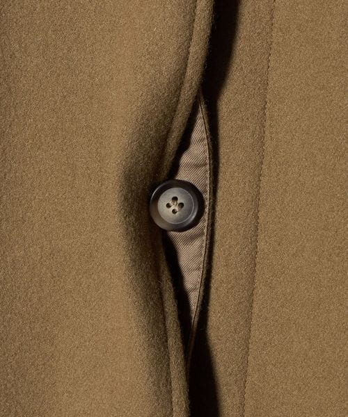 やや高めのネックにボタンをアクセントにした控えめなデザインが、シルエットを際立たせます。