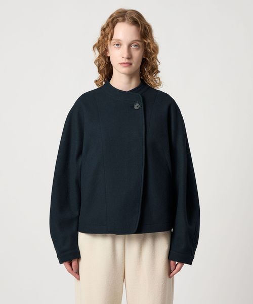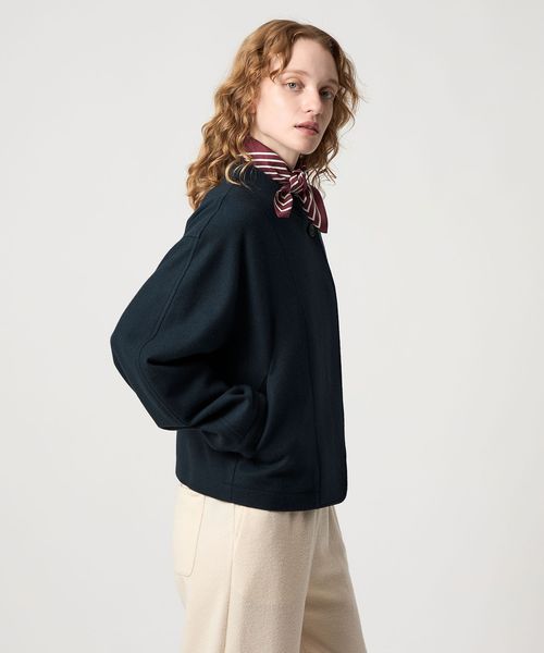 丸みのあるシルエットが特徴的なドルマンスリーブの、ショート丈ブルゾン。
