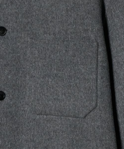 フロントのポケットにチンストラップを付けたカジュアルなディテールながら、素材の良さがクラシックな雰囲気を演出。