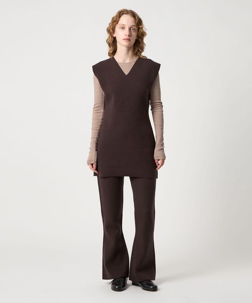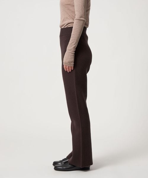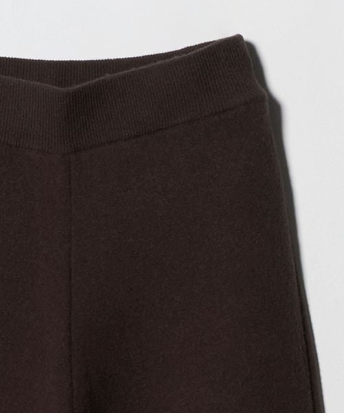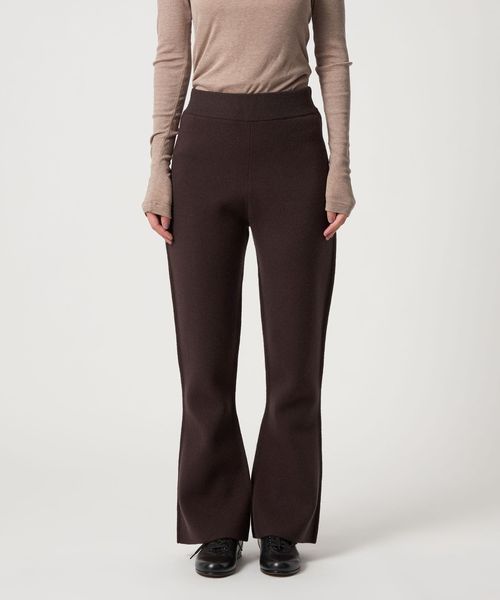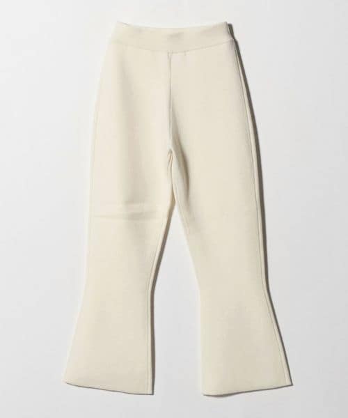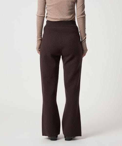 ウエストにゴムが入ったニット素材のフレアパンツ。