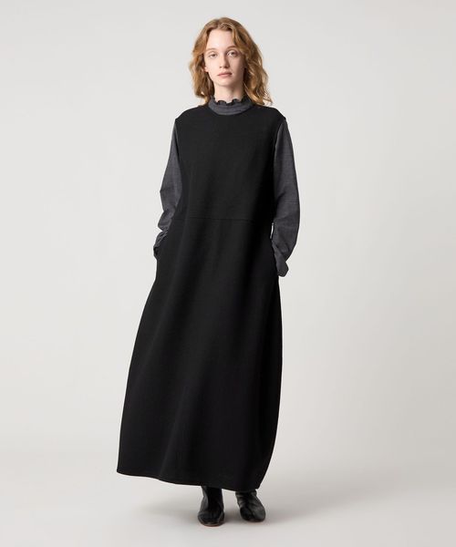 丸みのあるコクーンシルエットが特徴のノースリーブワンピース。