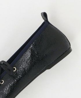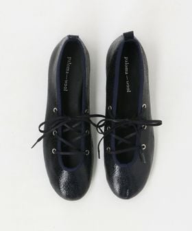 アッパーにレザーを使用した、レースアップのバレエシューズ。