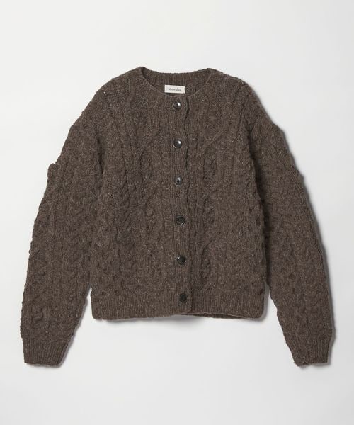 あたたかみのあるケーブル編みが特徴のニットカーディガン。