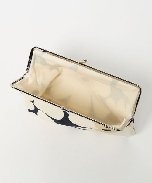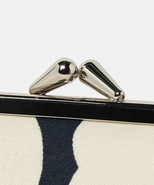 シックな色合いのUnikko柄のがま口ポーチ。