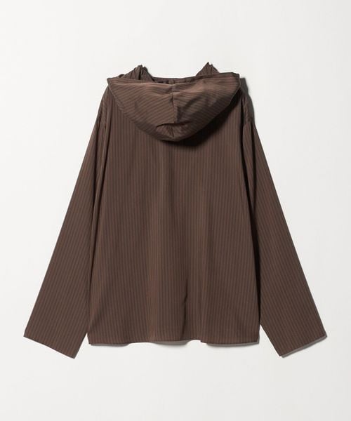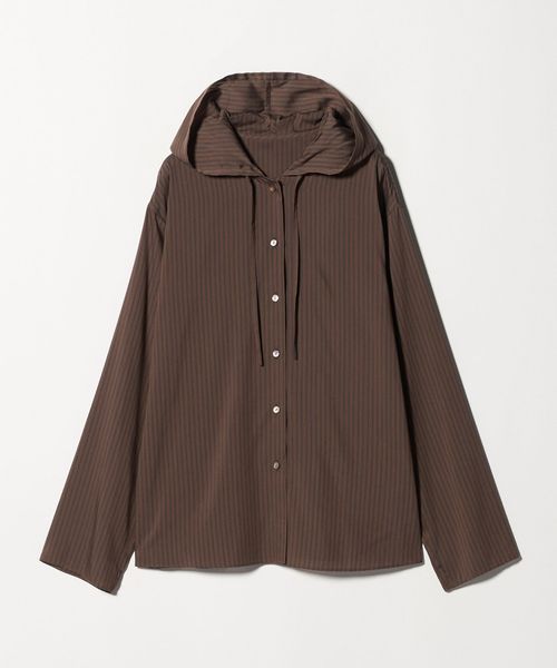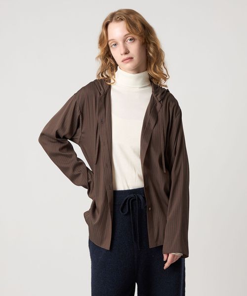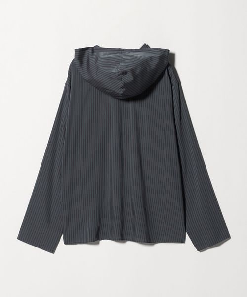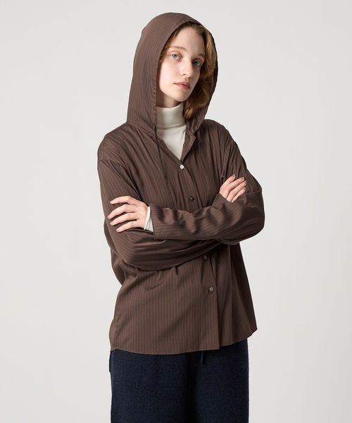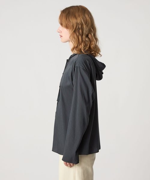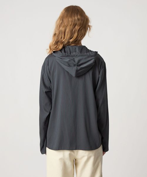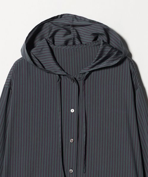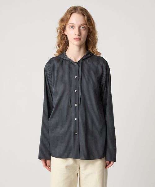 落ち感のある素材を使用した、フード付きストライプシャツ。