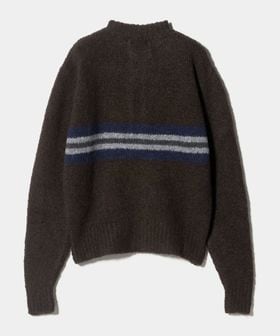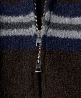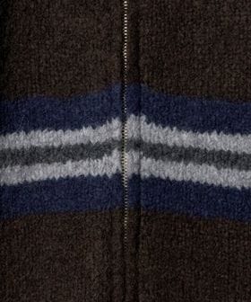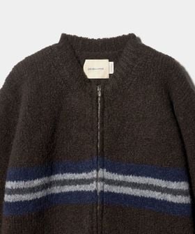 フロントにクラシカルなライン柄を入れた、ニットカーディガン。