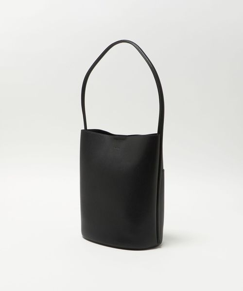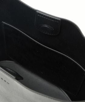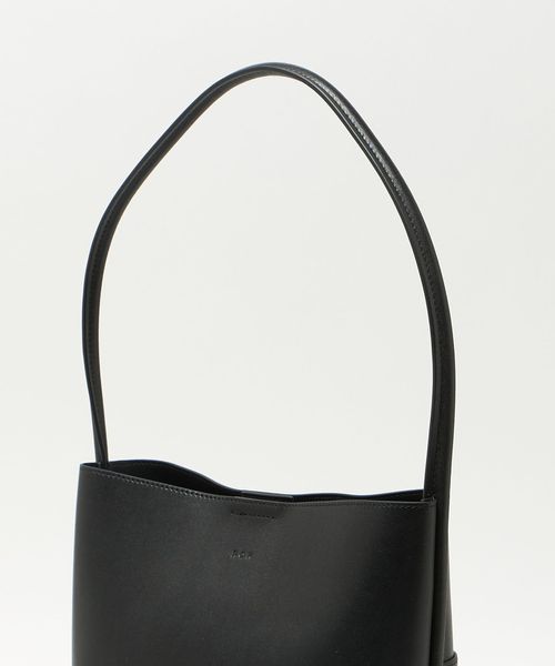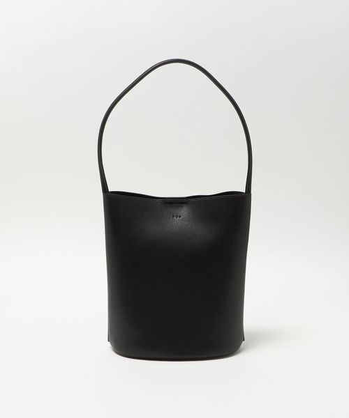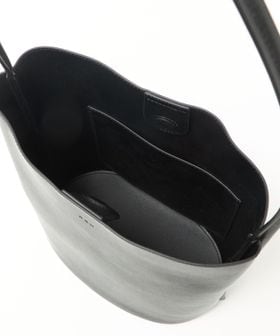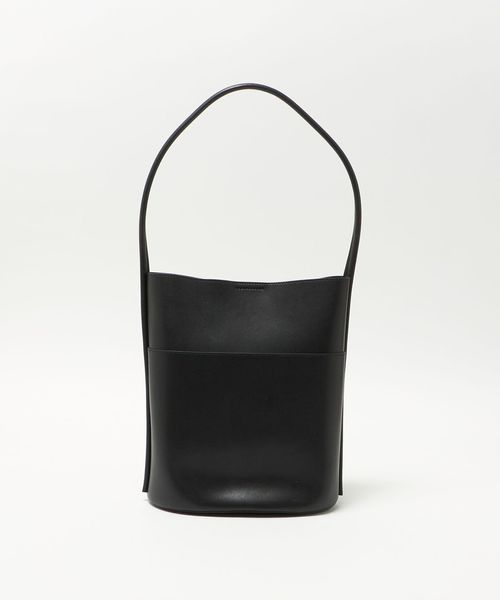 レザーの質感をいかした、バケット型のショルダーバッグ。
