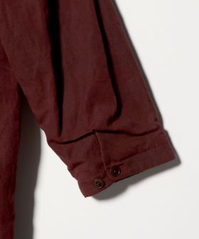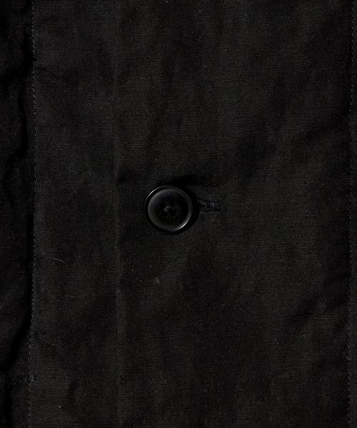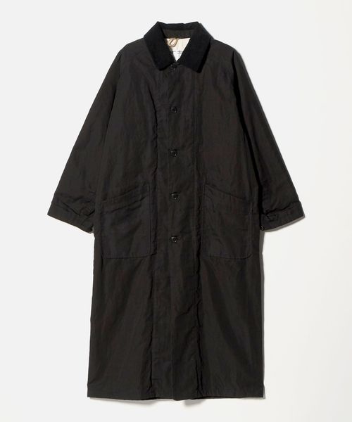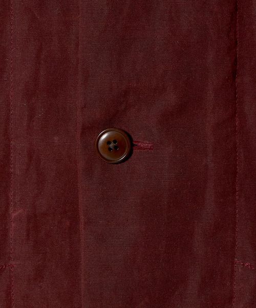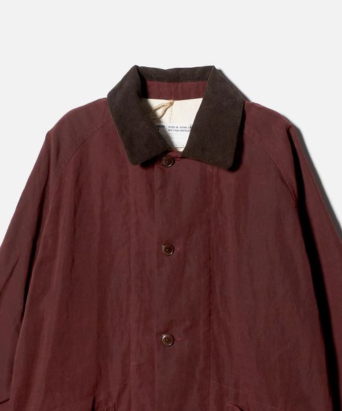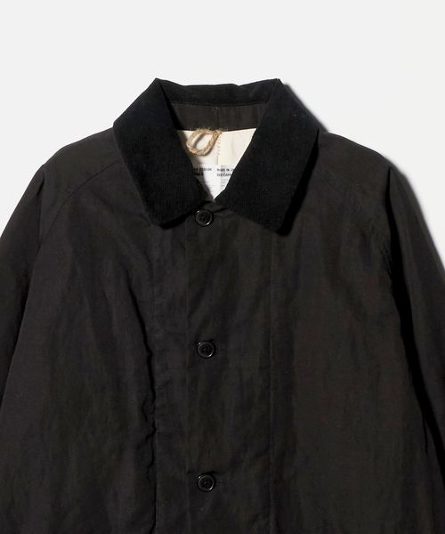 コットン麻の生地にオイルドコーティングを施した、ロング丈のカバーオールジャケット。
