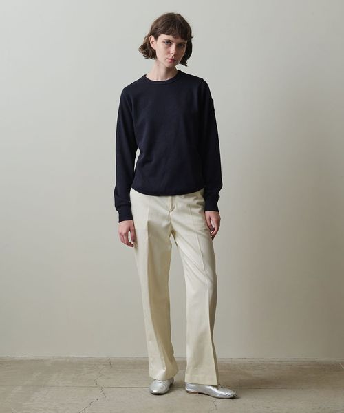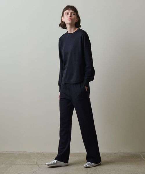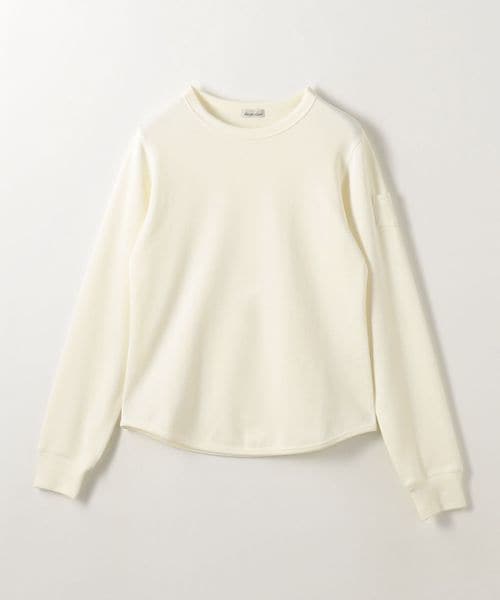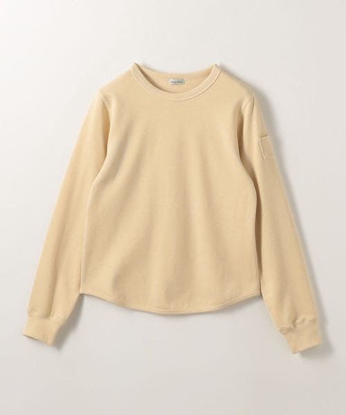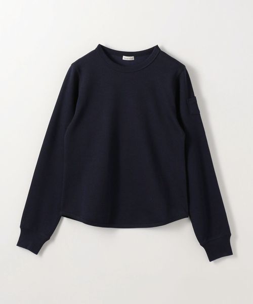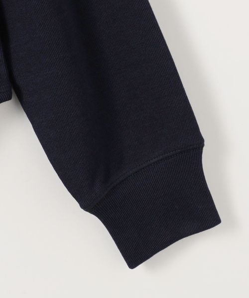 裾のラウンドカットと、袖口に配したリブがカジュアルな雰囲気ながら、大きすぎないサイズ感が上品な印象です。