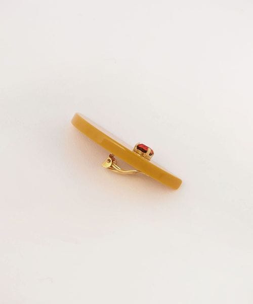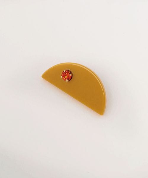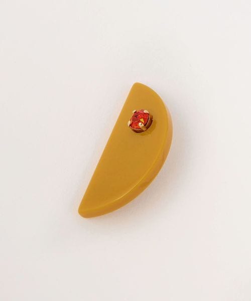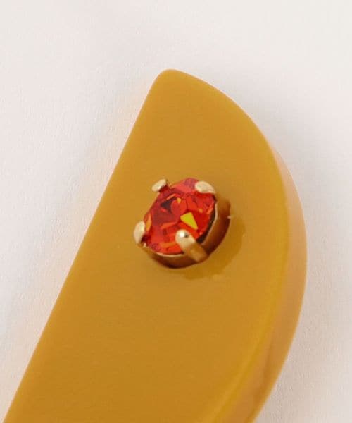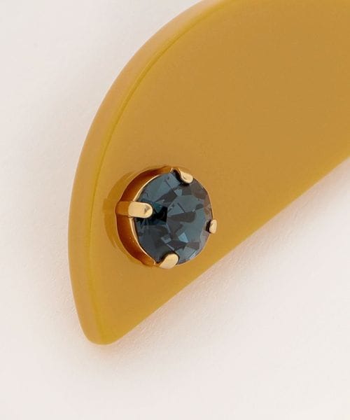 ラインストーンのアクセントが付いた、半円系のイヤリング。