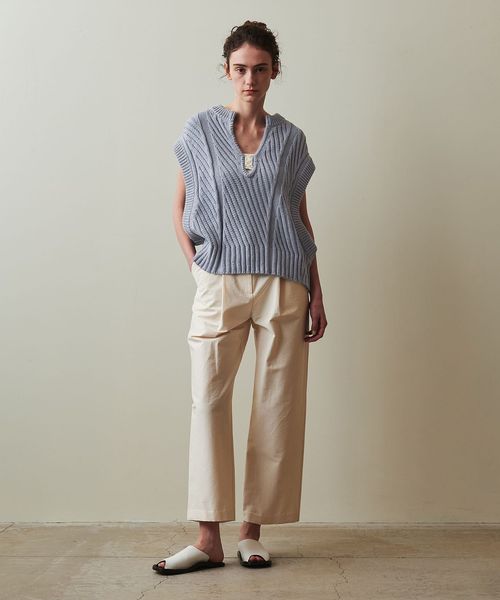 アームホールを大きく開けたゆとりのあるシルエットで、シャツやカットソーなどさまざまなアイテムとレイヤードを楽しめます。