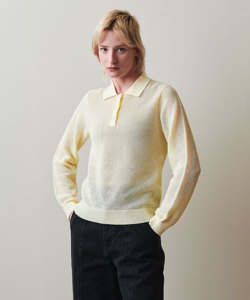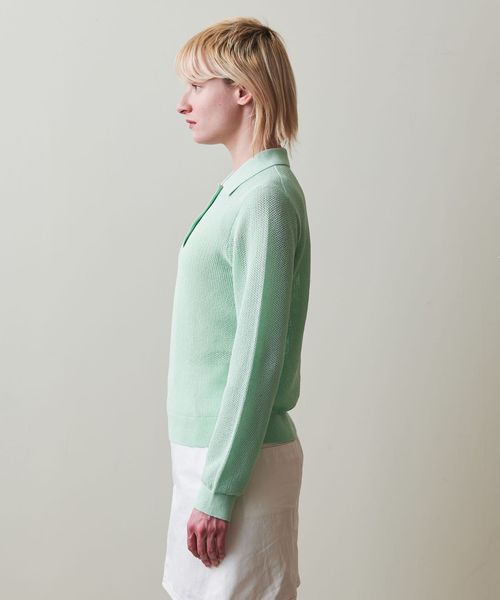 さらっとした風合いの糸を使用した、ポロシャツ型ニット。