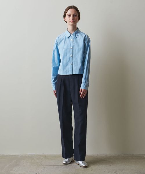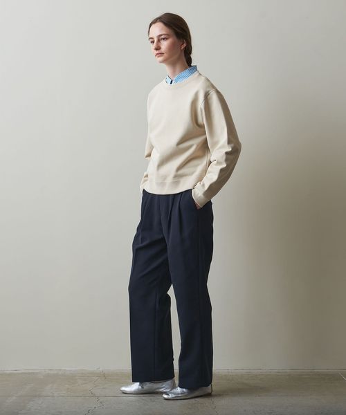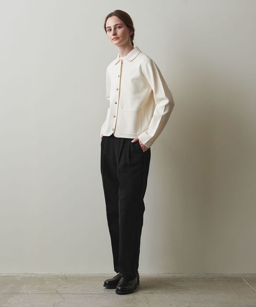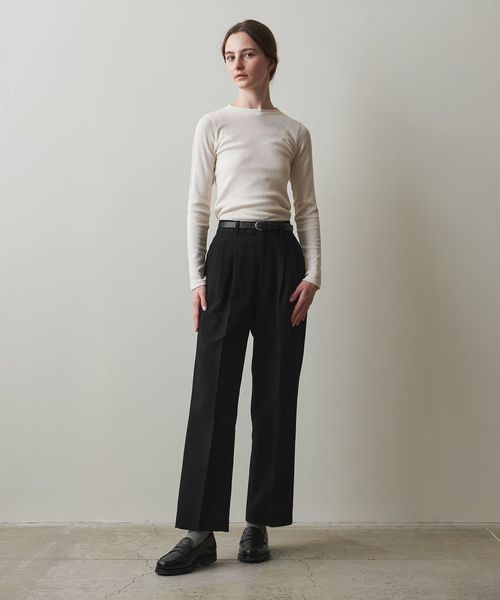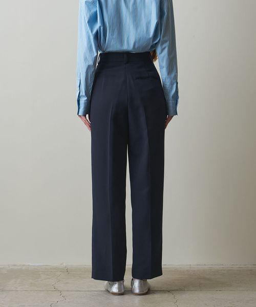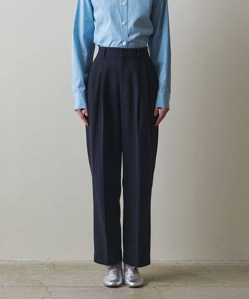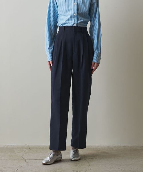 フロントにタックを入れたダブルクロスのテーパードパンツ。