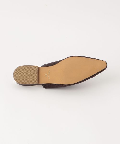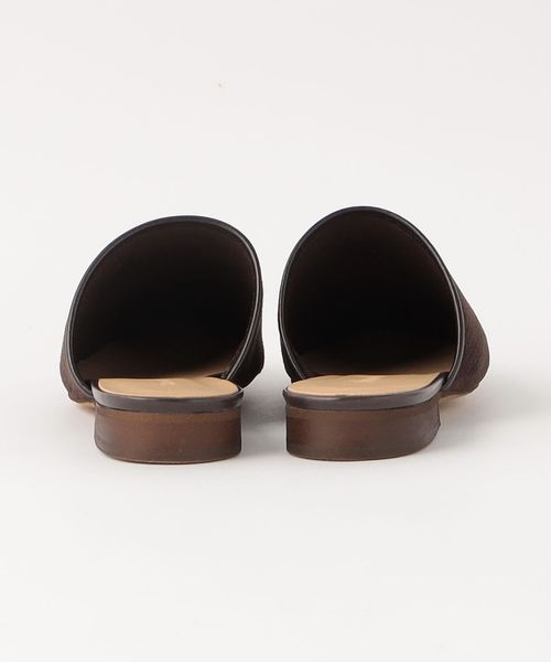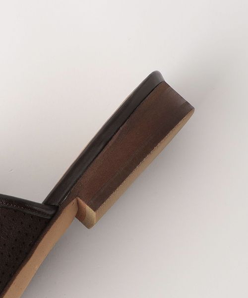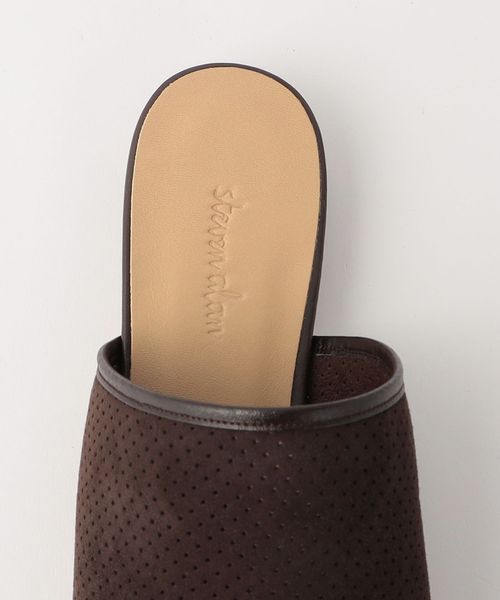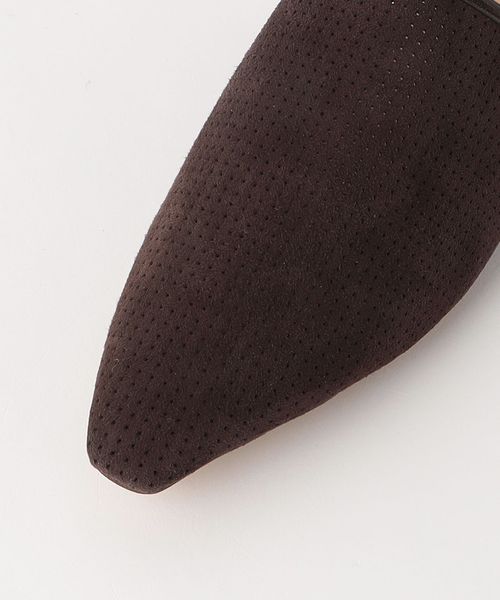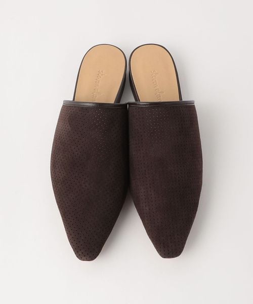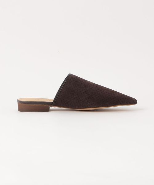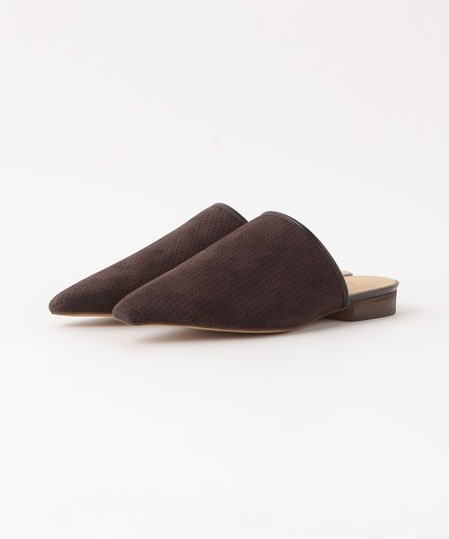 スエードにパンチングをしたアッパーデザインに、かかとの抜け感のバランスが新鮮なミュール。