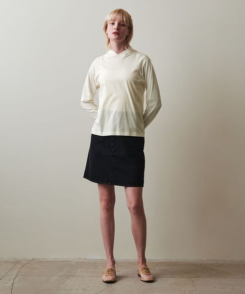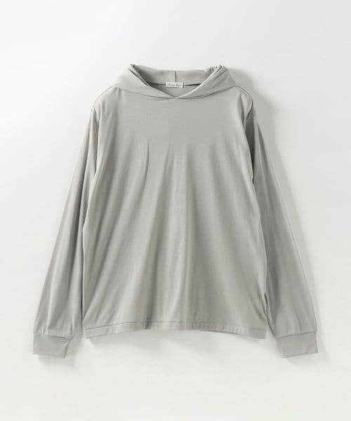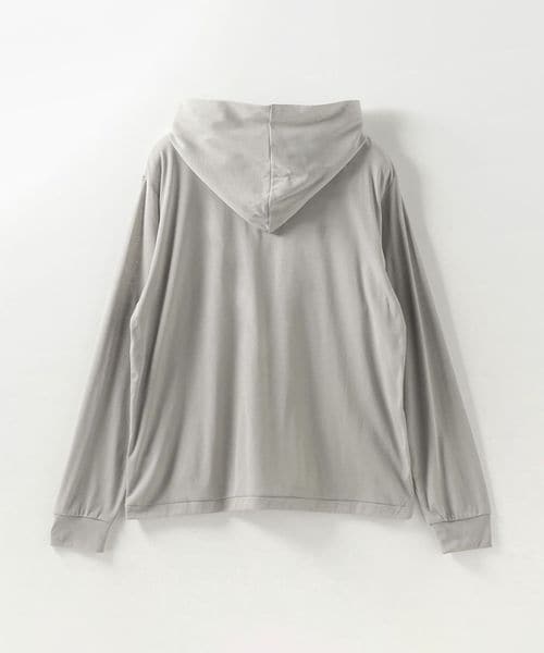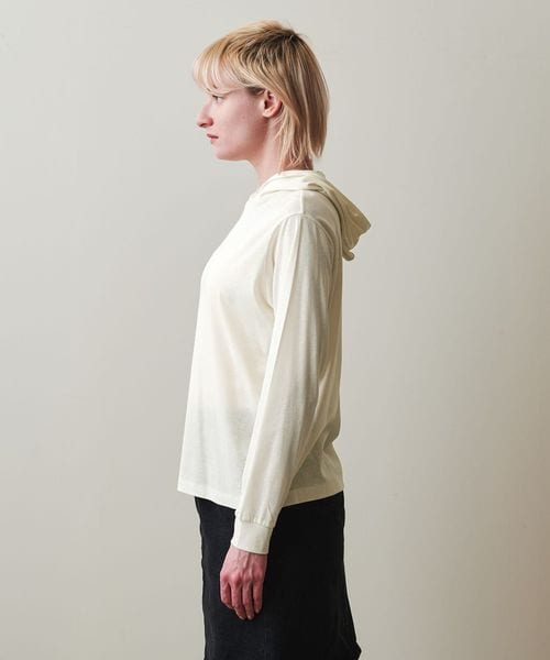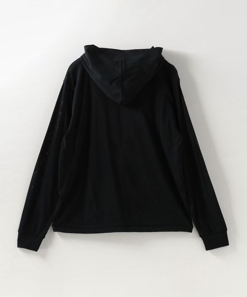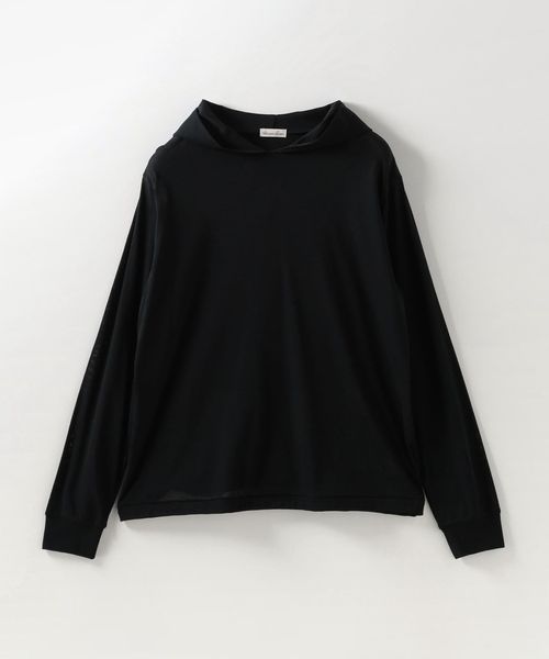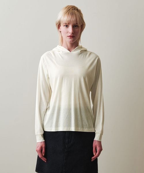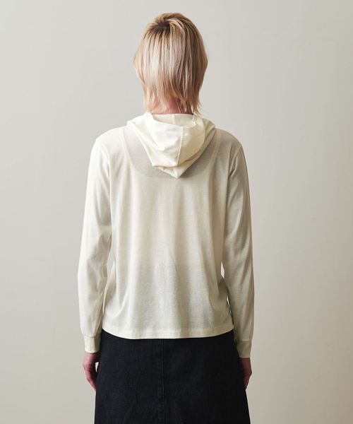 やや透け感のある、フード付きプルオーバー。