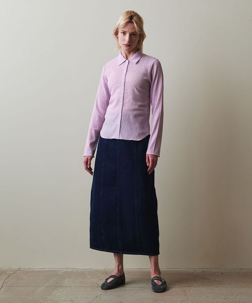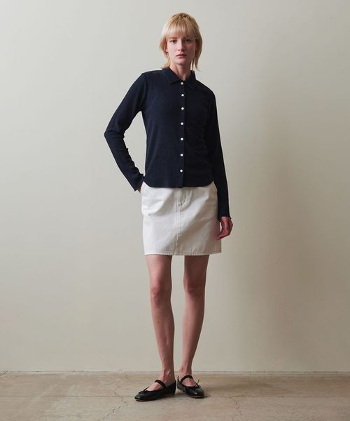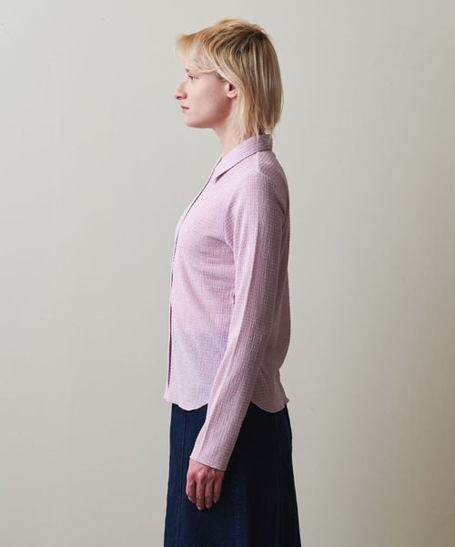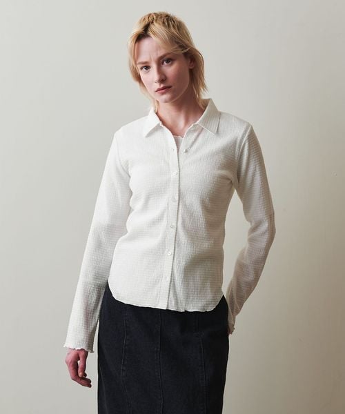 さらっとした風合いのクレープ素材を使用した、シャツデザインのカットソー。