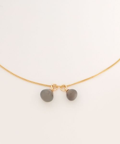 ゴールドカラーのチェーンに、2つの小さなGREY MOONSTONEが配されたネックレス。