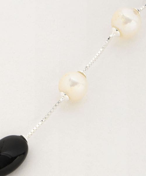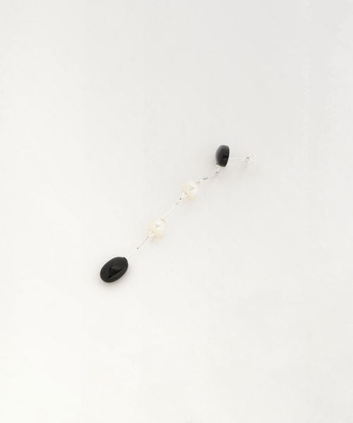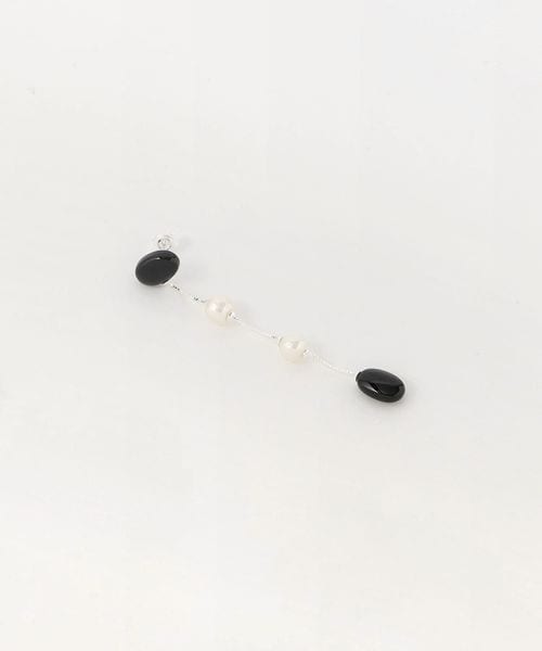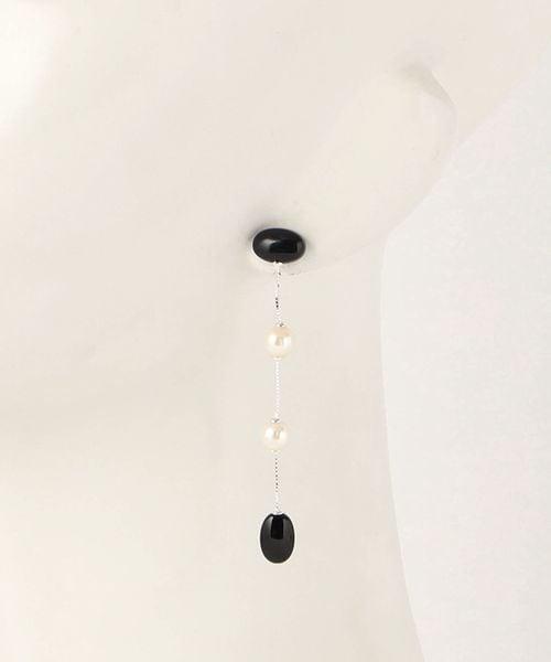 淡水パール、ブラックオニキス、シルバーを連ねた、ロングピアス。