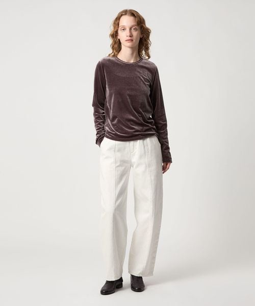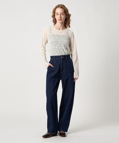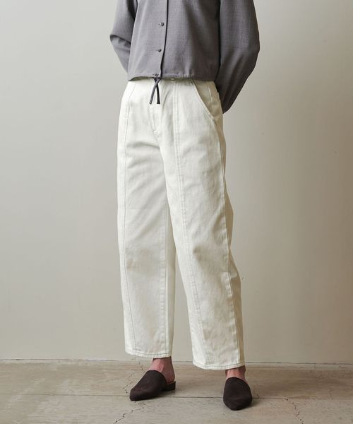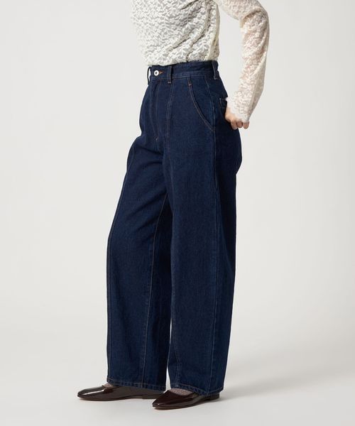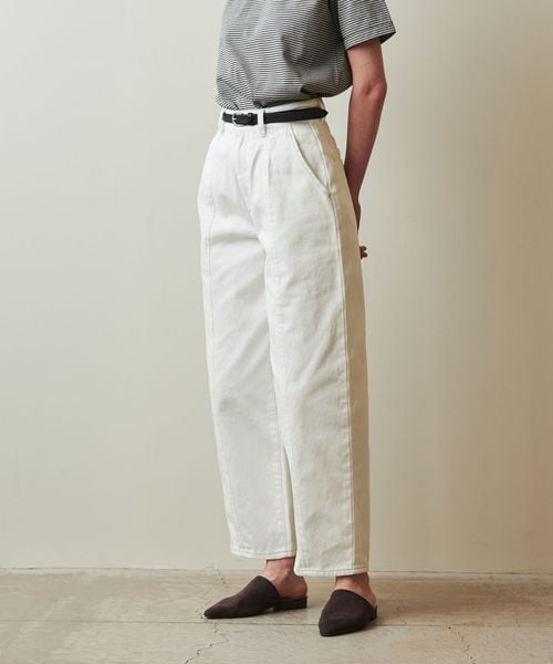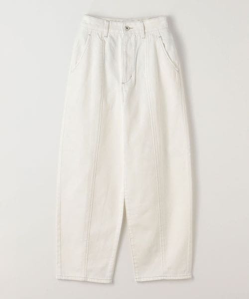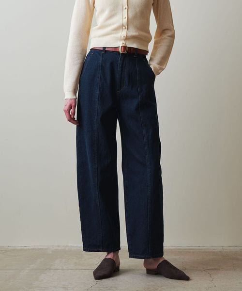 もも周りに程よくゆとりを持たせながら、裾に向かって緩やかにテーパードさせた立体的なシルエットが存在感のある樽型のデニムパンツ。