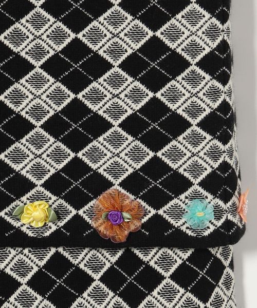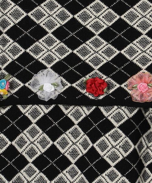 スカートとパンツの裾にはフラワーモチーフが施された、愛らしい一着。