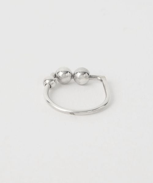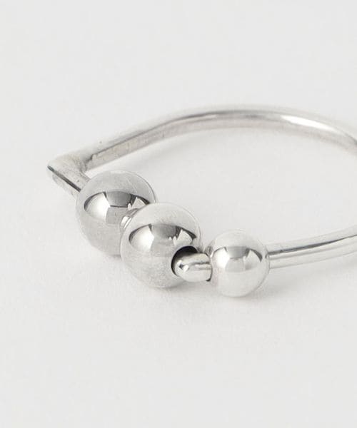 シルバーパーツに、大きさの異なるボールパーツをセットしたグラフィカルなリング。