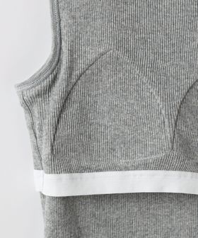 心地よいフィット感のあるテレコ素材に縫製されたブラカップ付きで、胴回りに一周入れたアンダーゴムが安定した着用感を生み出します。