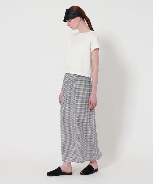 モードな雰囲気漂う素材が、コーディネートのアクセントとして活躍します。