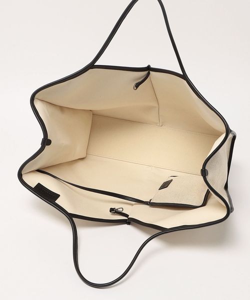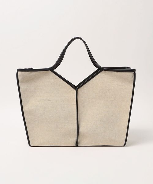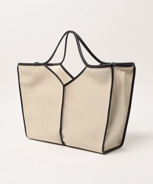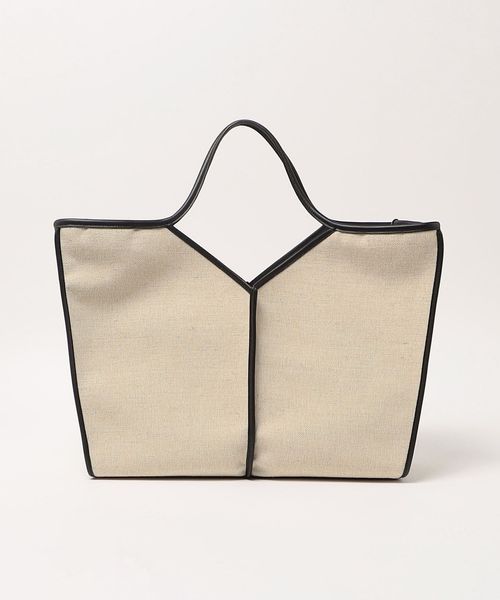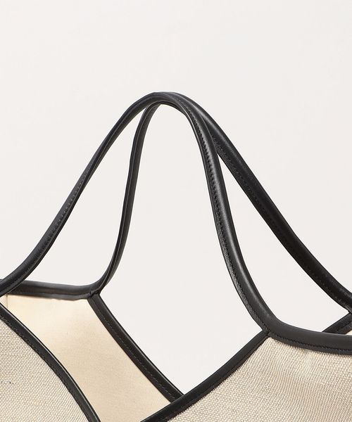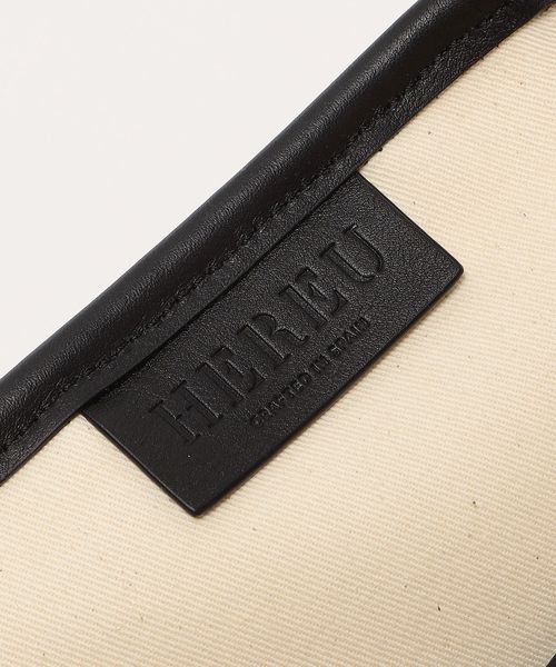綿麻の素材にレザーでトリムを施した<HEREU>のバッグ。