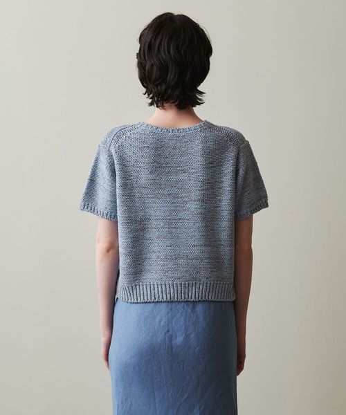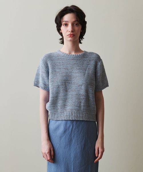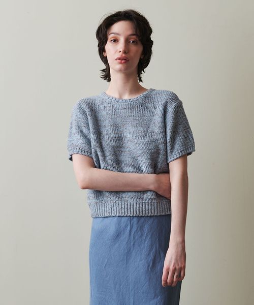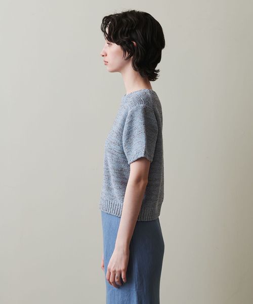 きらきらとしたラメを引き揃えて編んだニットプルオーバー。