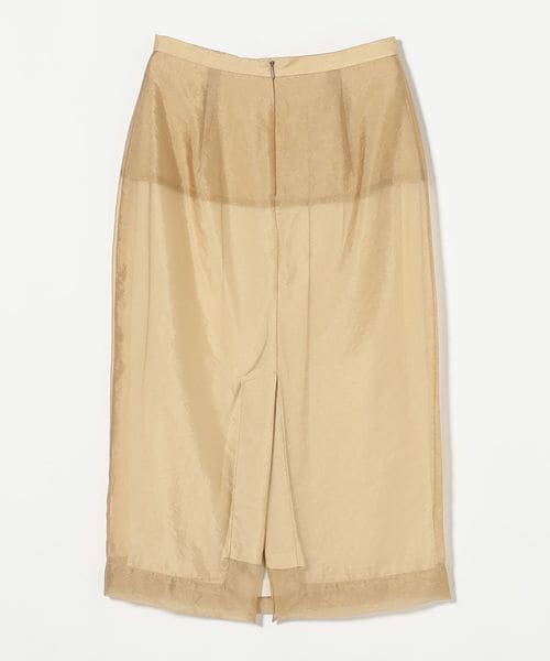 シアーな素材感の生地がレイヤードされた、タイトスカート。