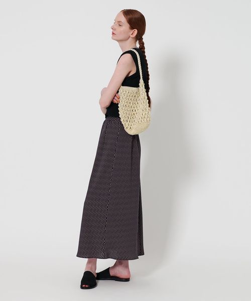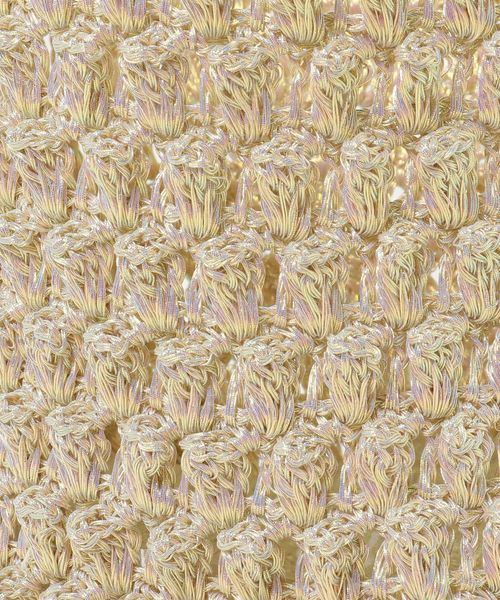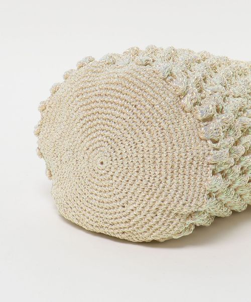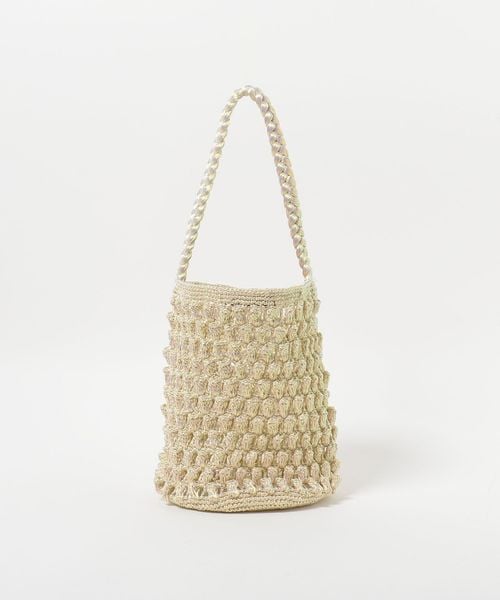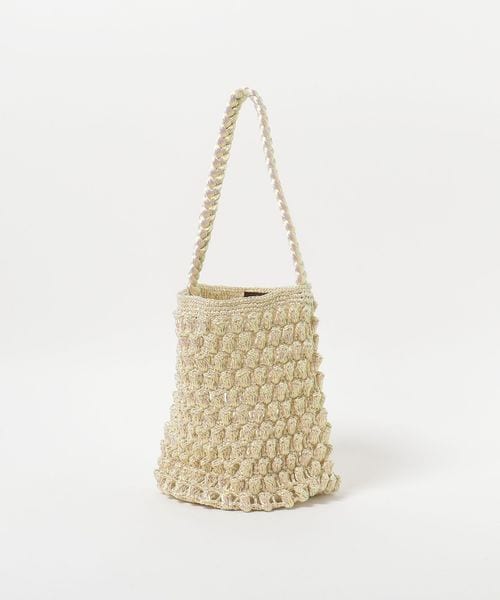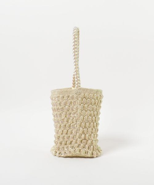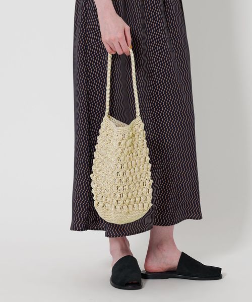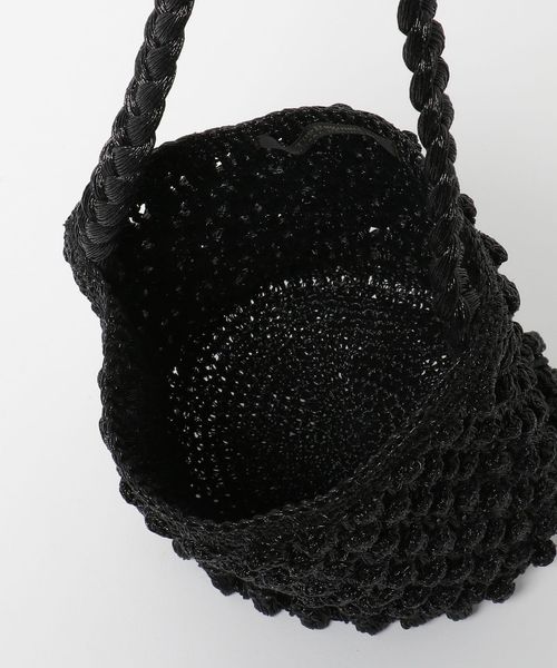 クロシェ編みのような立体的なデザインが目をひくバッグ。