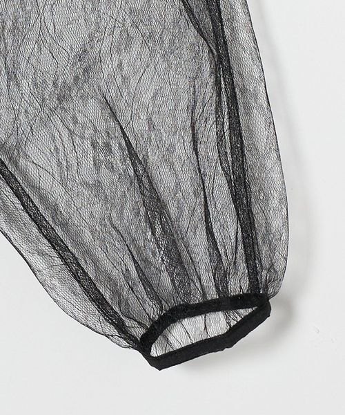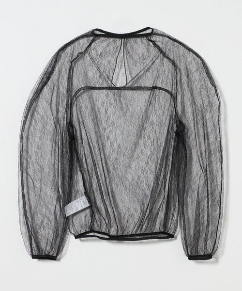 ボリュームシルエットとシアーなレースが目をひく、トップス。