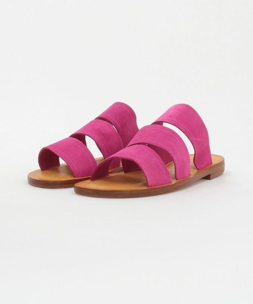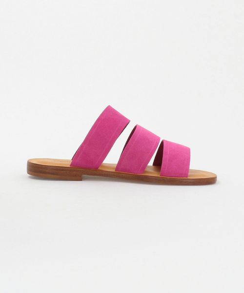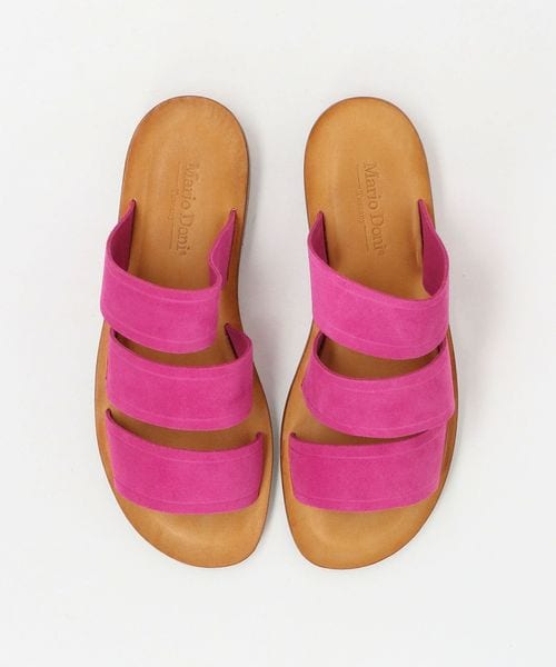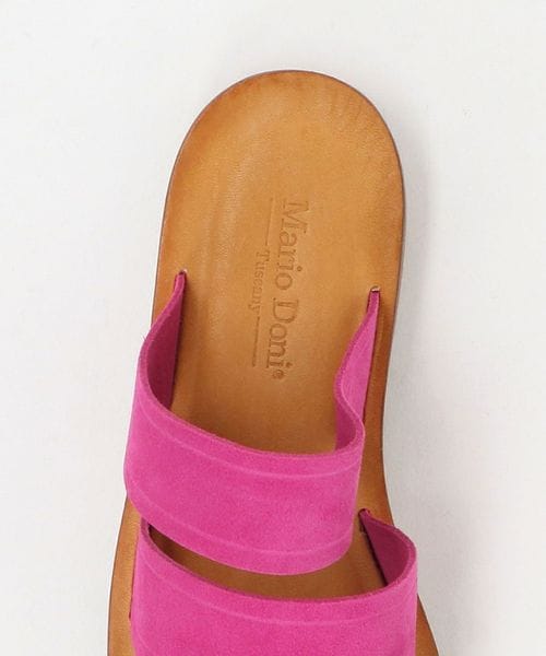 鮮やかなピンクカラーのストラップが際立つ、<Mario Doni>のフラットサンダル。