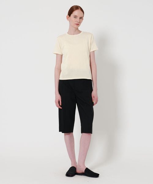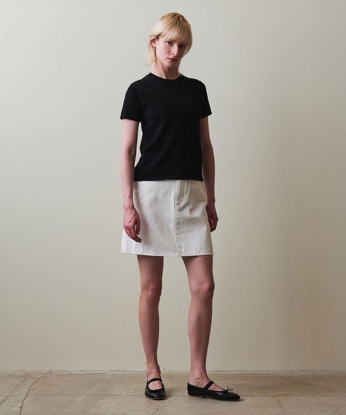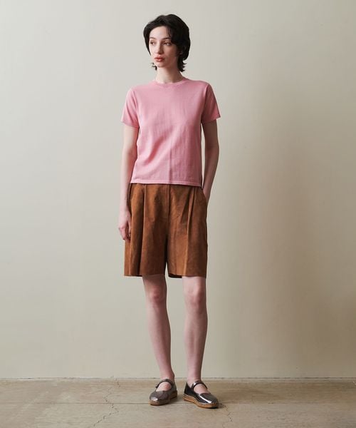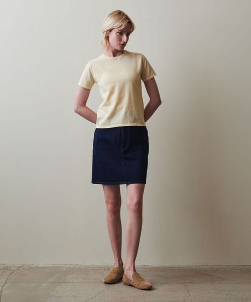 衿ぐりをリブ編みにしたTシャツライクなディテールが、ラフな雰囲気をプラスします。