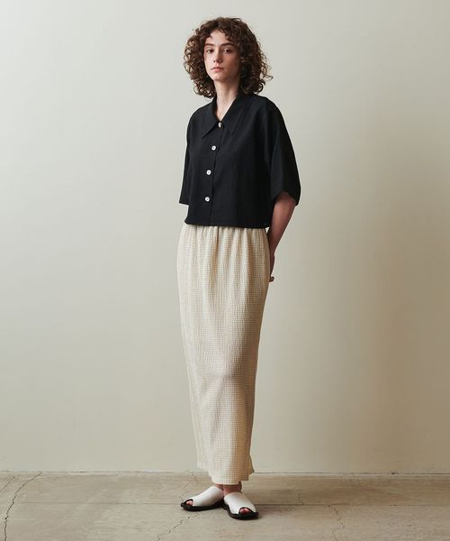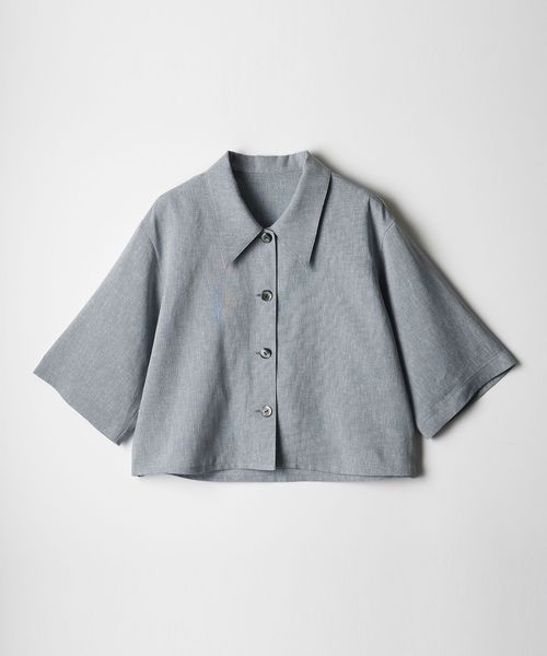 涼やかな風合いの素材を使用した、ショート丈のシャツ。