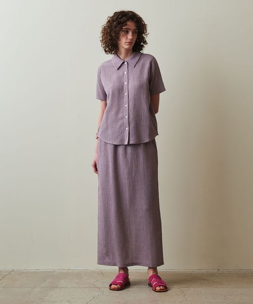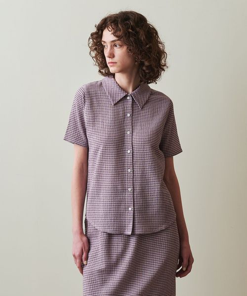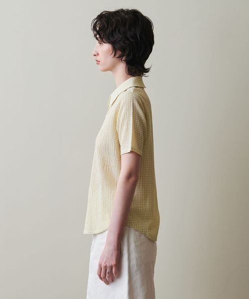 <Steven Alan>クレープ チェック ハーフスリーブ シャツ