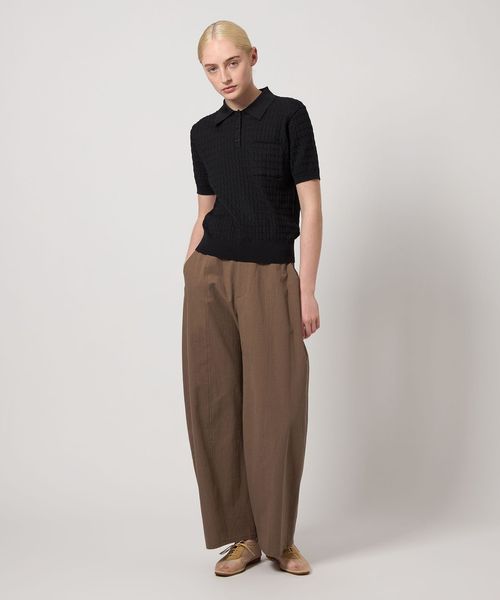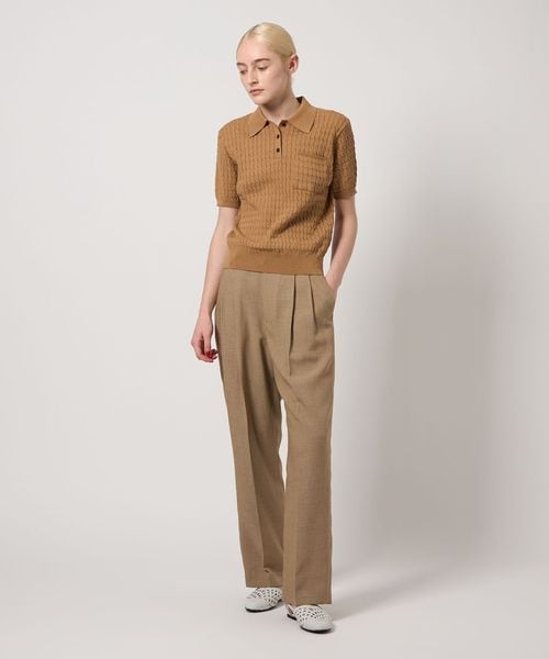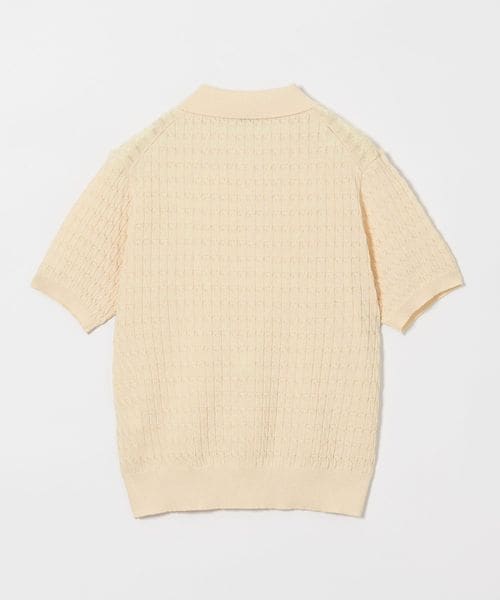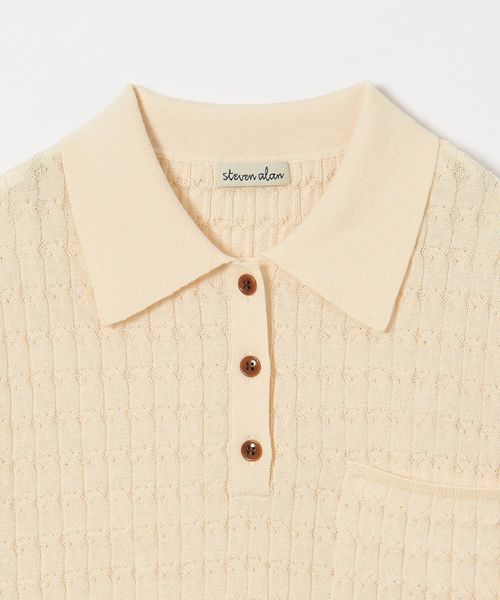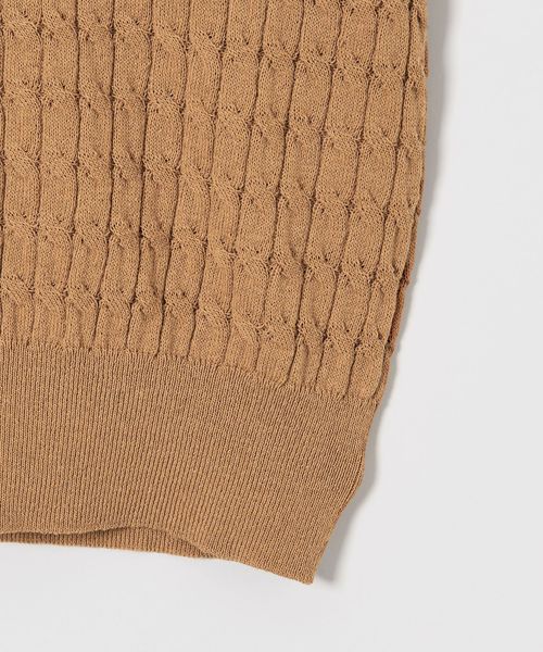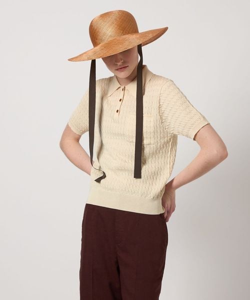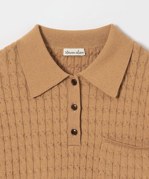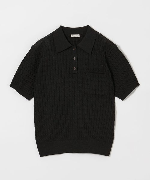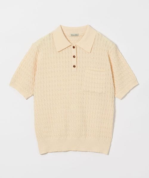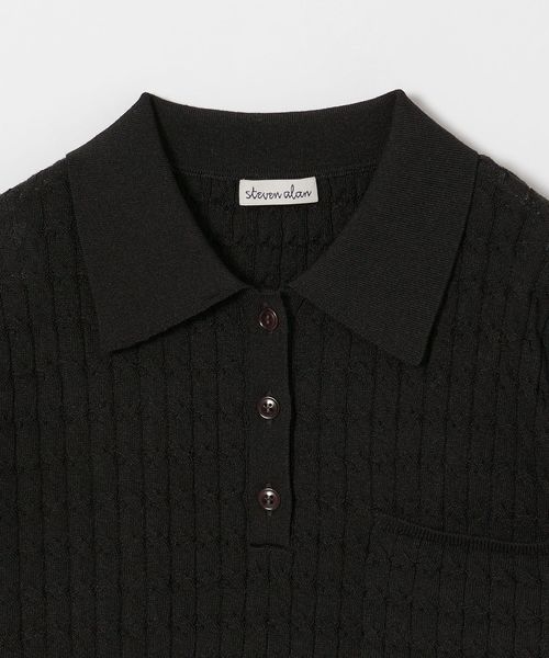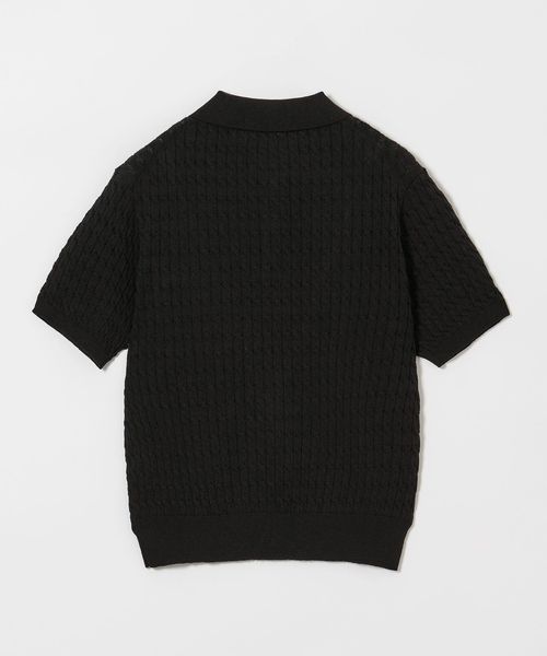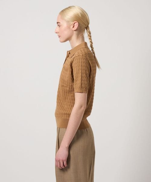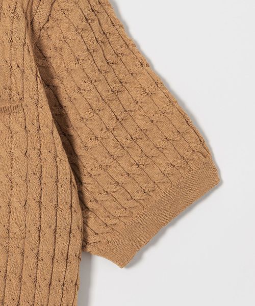 細いケーブル編みが上品な、ショートスリーブのポロニット。