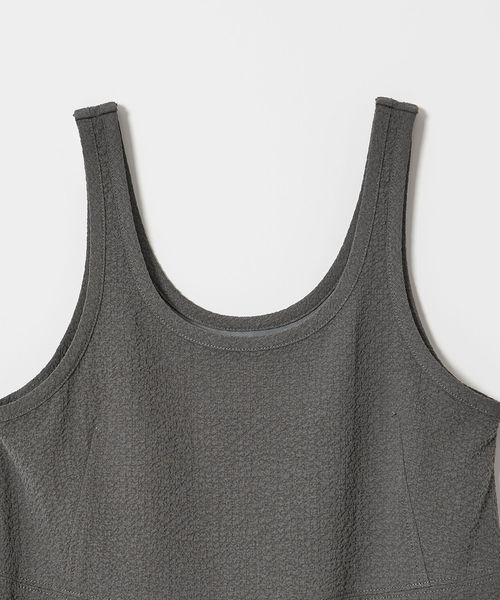 ネックをすっきりと開けたタンクトップデザインに、丸みを持たせたスカートシルエットがモダンな雰囲気です。