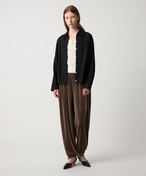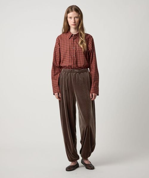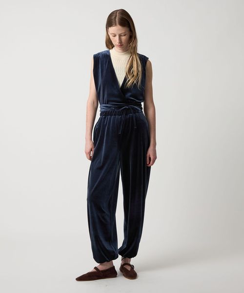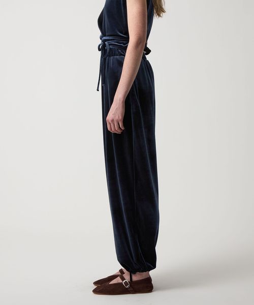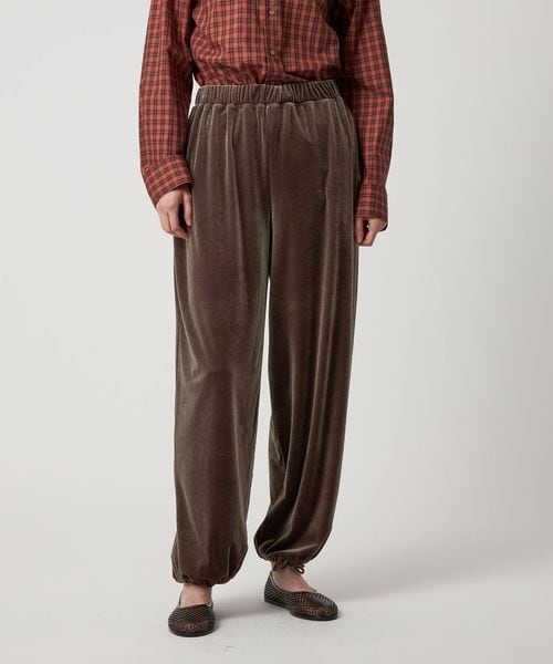 上品な光沢が特徴のベロア生地を使用したイージーパンツ。