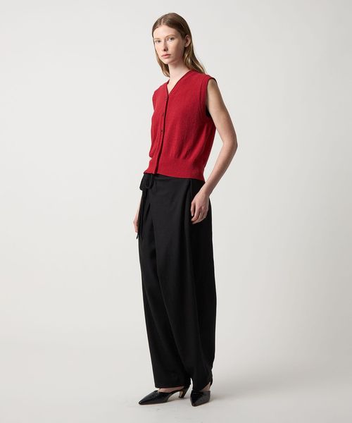 ヒップやもも周りにゆとりを持たせながら、ウエストをぎゅっと絞るメリハリのあるシルエットがリラックス感を漂わせます。