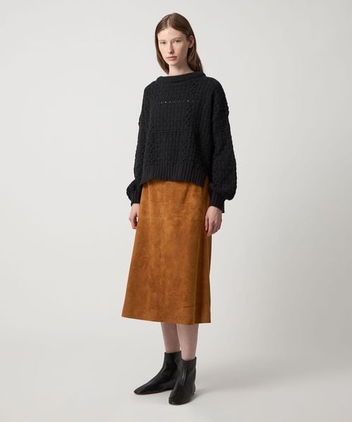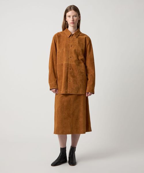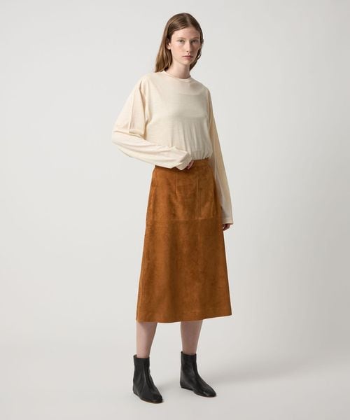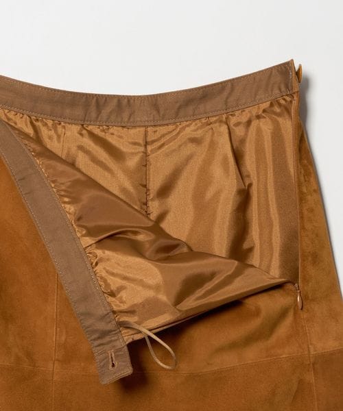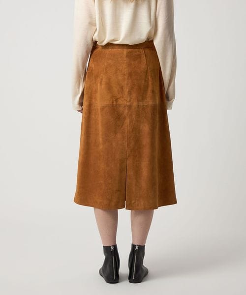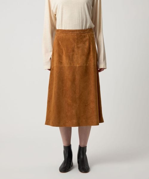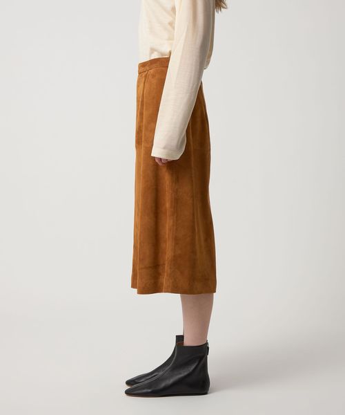 やぎ革を使用した、ミドル丈の台形スカート。