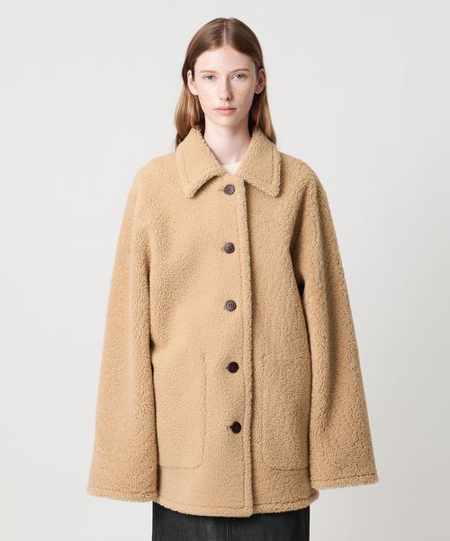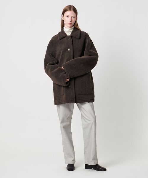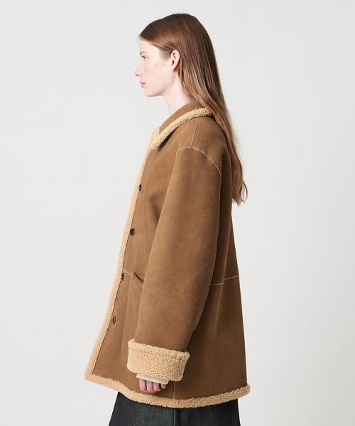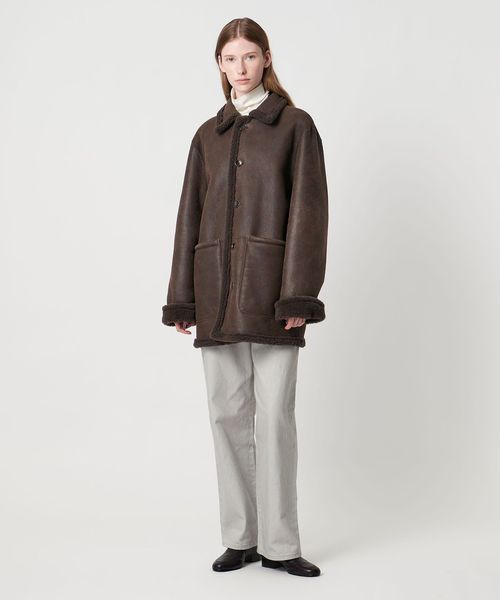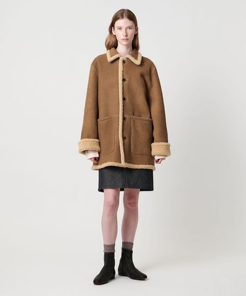 やや長めの着丈にボクシーなシルエットで仕上げた、ムートンブルゾン。