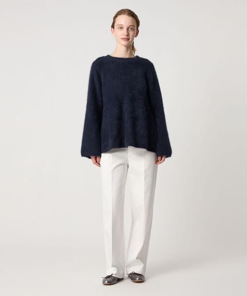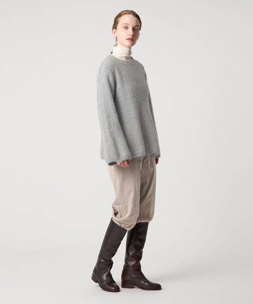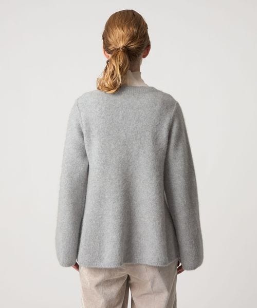 Aラインの身頃と、ベルスリーブが上品な印象のプルオーバーニット。