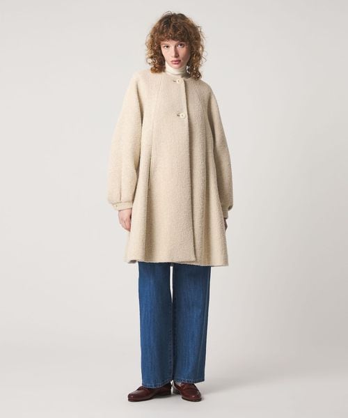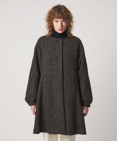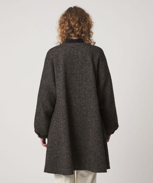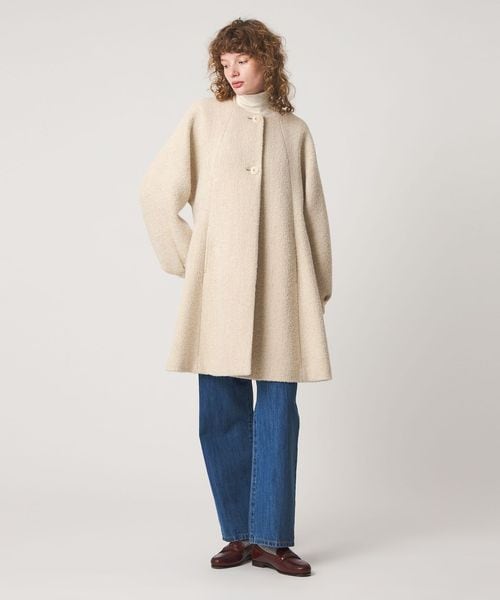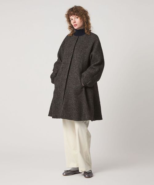 裾に向かってフレアに広がるシルエットが特徴のコート。